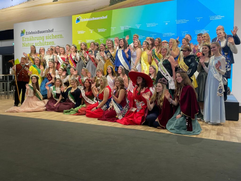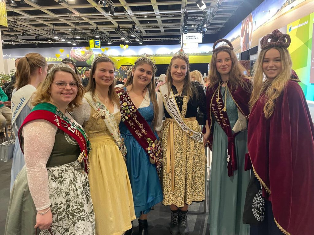 Am nächsten Morgen ging es dann zur Grünen Woche, wo sie in einem eigenen Bereich zusammen mit zahlreichen Majestäten aus ganz Deutschland empfangen wurden – darunter auch viele Vertreterinnen und Vertreter aus Bayern.