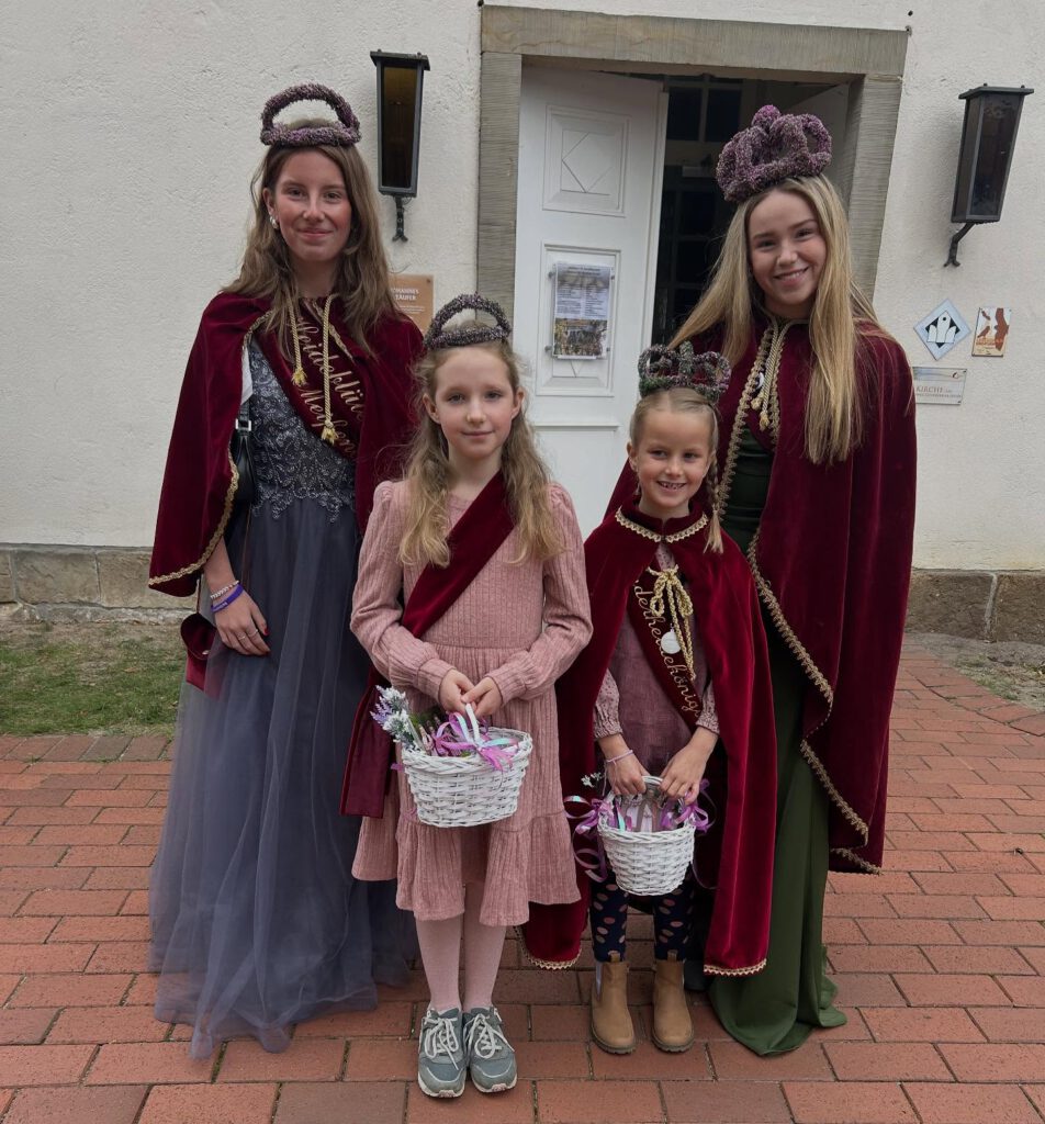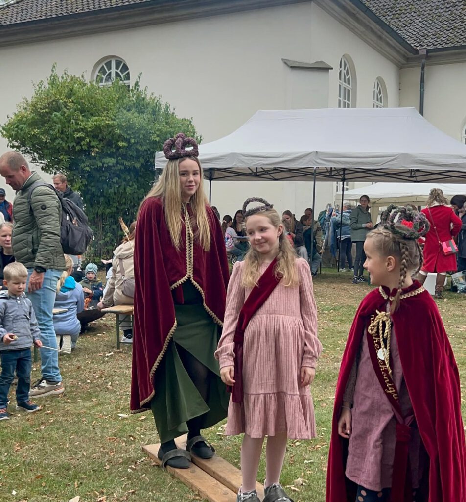 Zum 30. Kartoffelmarkt hatt Pastor Mirko Kühne die Meißendorfer Majestäten eingeladen. Für die Kindermajestäten es der erste Auftritt. Sie hatten die Aufgaben die Namen vom Gewinnspiel zu ziehen und für die Siegerehrung  die Namen der Sieger einer Versteigerung aufzurufen.